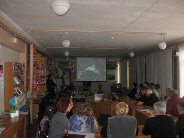Учасники “круглого столу” – знавці української історії, освітяни, бібліотекарі, газетярі й небайдужі люди переглянули документальний фільм «Білим по чорному». Ділилися інформацією та спогадами людей, які пережили голодомор. Обговорювали причини та наслідки тих страшних для українців подій, що відчутні й дотепер.