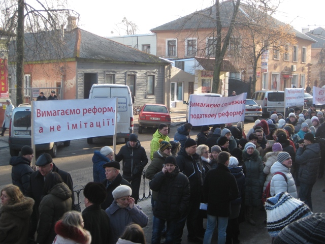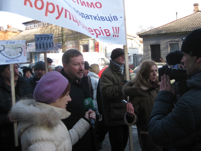 Захід розпочався о 10 годині біля будівлі Державної податкової інспекції м. Чернігова, а потім учасники прийшли під стіни Головного управління ДФС у Чернігівській області.