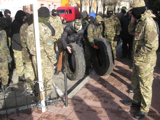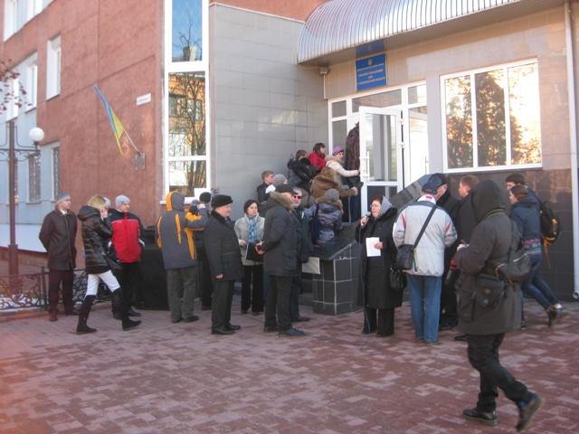 Чиновники підготувалися до акції. У приміщенні установи вже була група молодих людей, які представились учасниками організації «Правий сектор» з Києва та пояснили, що прибули, щоб «слідкувати за порядком».
