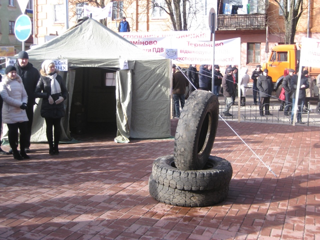 Про це нагадуватиме намет з пікетувальниками та гасла перед входом в обласну фіскальну службу: