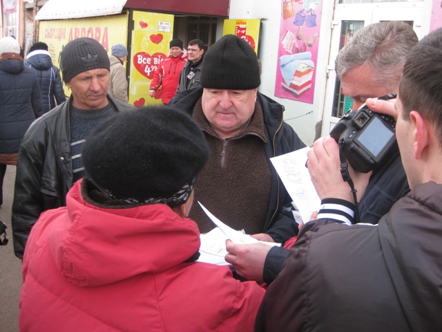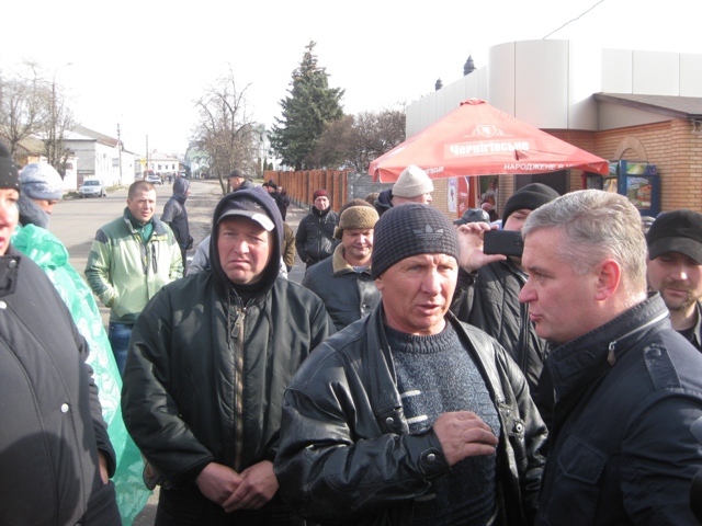 До підприємців-мітингарів вийшов Ніжинський міський голова Анатолій Лінник і заступник міського голови з питань економіки та фінансів Сергій Осадчий. Вони намагалися пояснити підприємцям, що торгівля на тротуарі незаконна і просили їх перейти на територію колишнього колгоспного ринку або ж на новостворений ринок на вул. Орджонікідзе біля річки Остер.