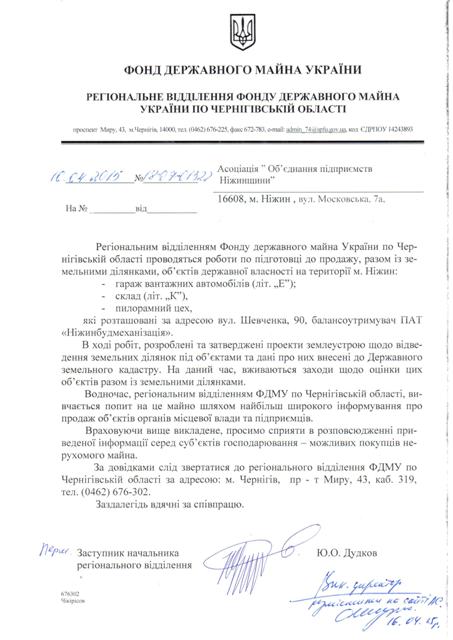 За довідками слід звертатися до регіонального відділення ФДМУ по Чернігівській області за адресою: м. Чернігів, пр – т Миру, 43, каб. 319, тел. (0462) 676-302.
