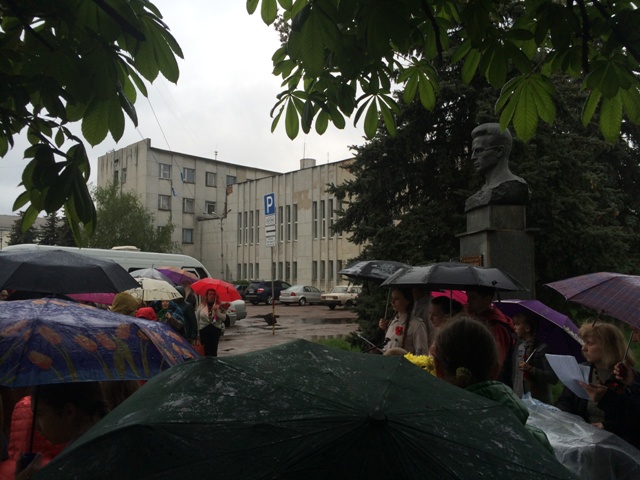На диво, урочистості були малочисельними, хоча у них узяли участь ветерани і делегація незрячих з Києва. Широкого представництва міського активу не було, традиційно представників держаних і самоврядних органів було підмінено невеликою групою школярів. Вшанування, таким чином, перетворилися на слабо зорганізований формальний захід. Це у двічі прикро і дивно під час теперішньої боротьби з підступним ворогом на сході. Чи зріс рівень патріотизму дітей, які “віддувалися” під дощем за дорослих? І чи не байдужістю можна пояснити факт зникнення меморіальної дошки на будинку родини Батюків кілька років тому?