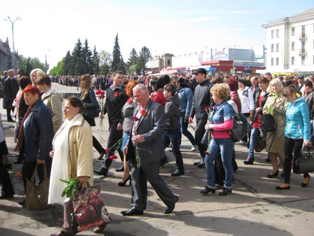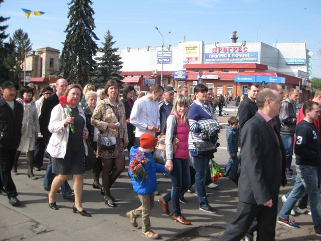 Сьогодні 9 травня 2015 р. відбулася урочиста хода від агротехнічного інституту до площі Гоголя. Як виявилося, ініціатива Асоціації була в унісон загальному патріотичному піднесенню ніжинців, адже почесна хода розтяглася на кількасот метрів.