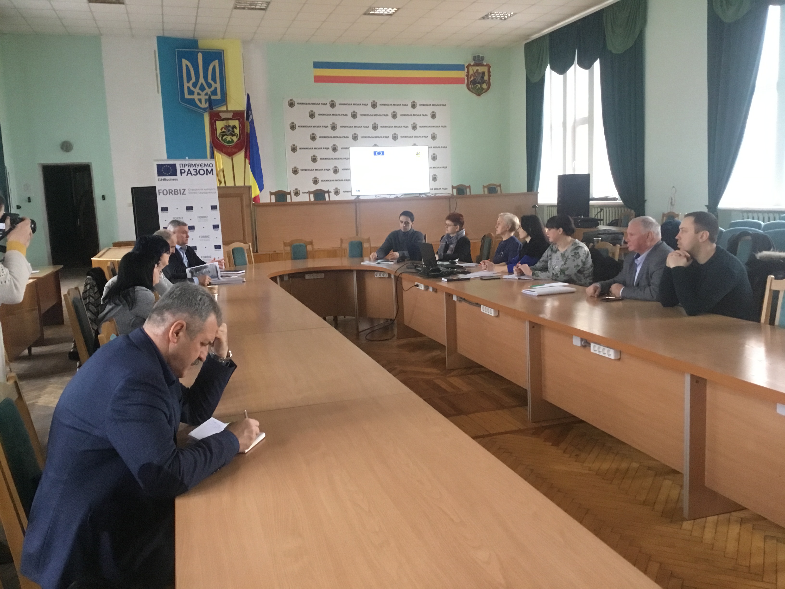 Зустріч, яку відкрив міський голова Анатолій Лінник, а провела Ольга Красовська, старший консультант з питань політики розвитку МСП FORBIZ, є продовження співпраці, що здійснювалася протягом 2018 року і завершилася видачею рекомендацій. Про їх виконання доповіла Тетяна Гавриш, в. о. начальника відділу економіки і інвестиційної діяльності.